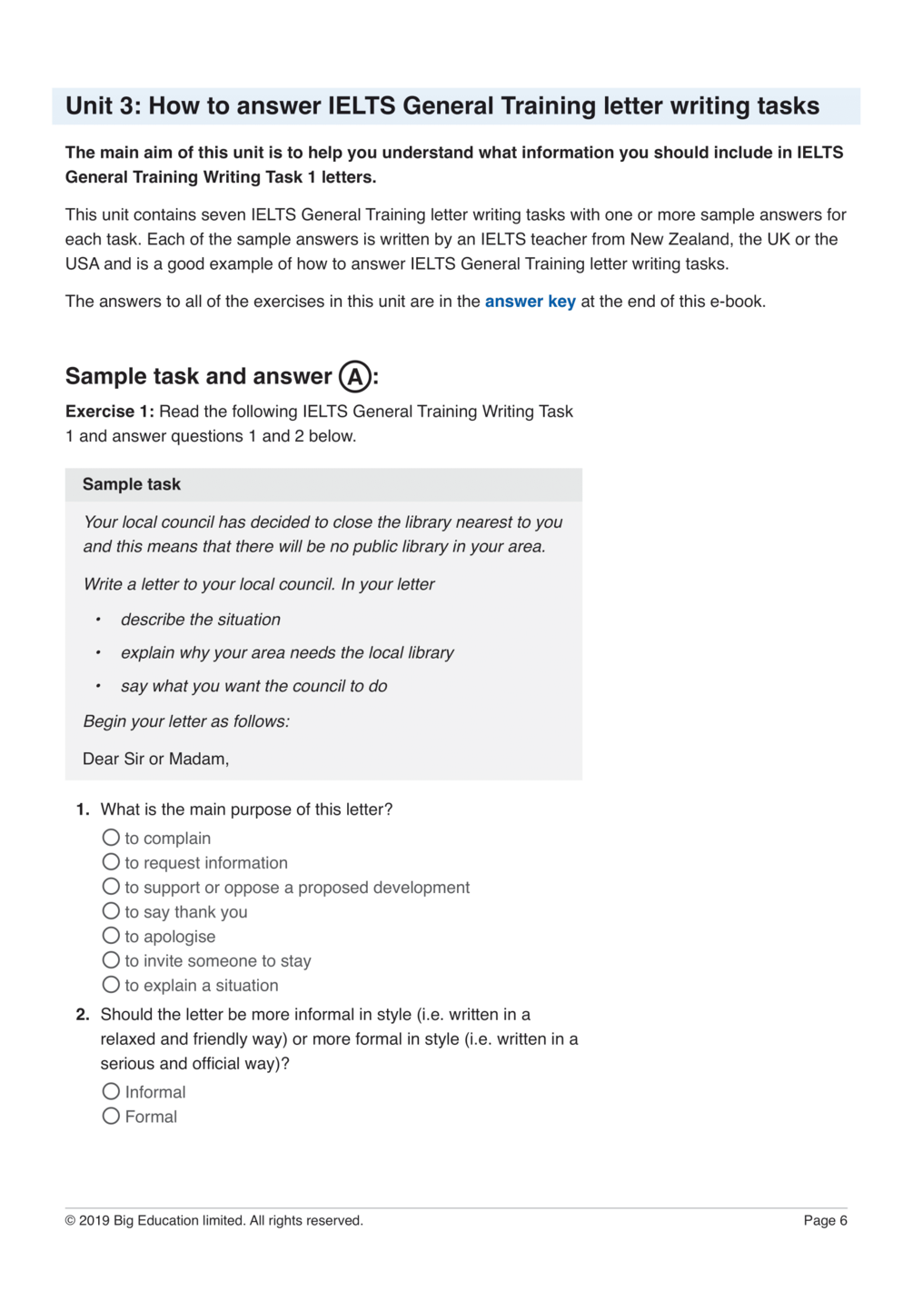 - understand how to answer the different kinds of IELTS General Training Writing Task 1 and 2 question