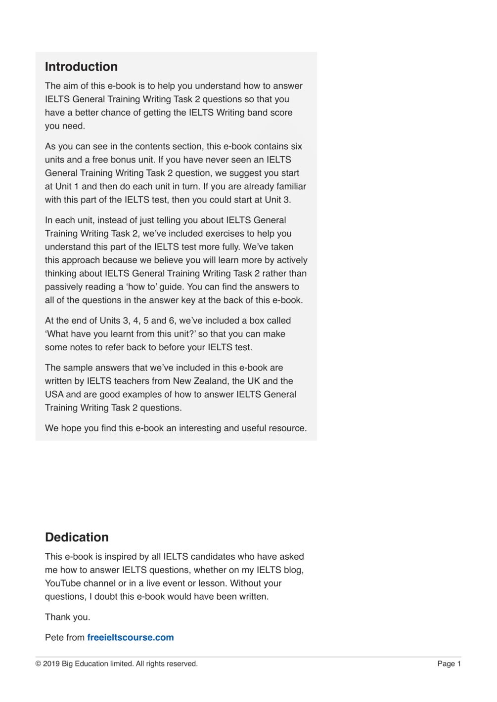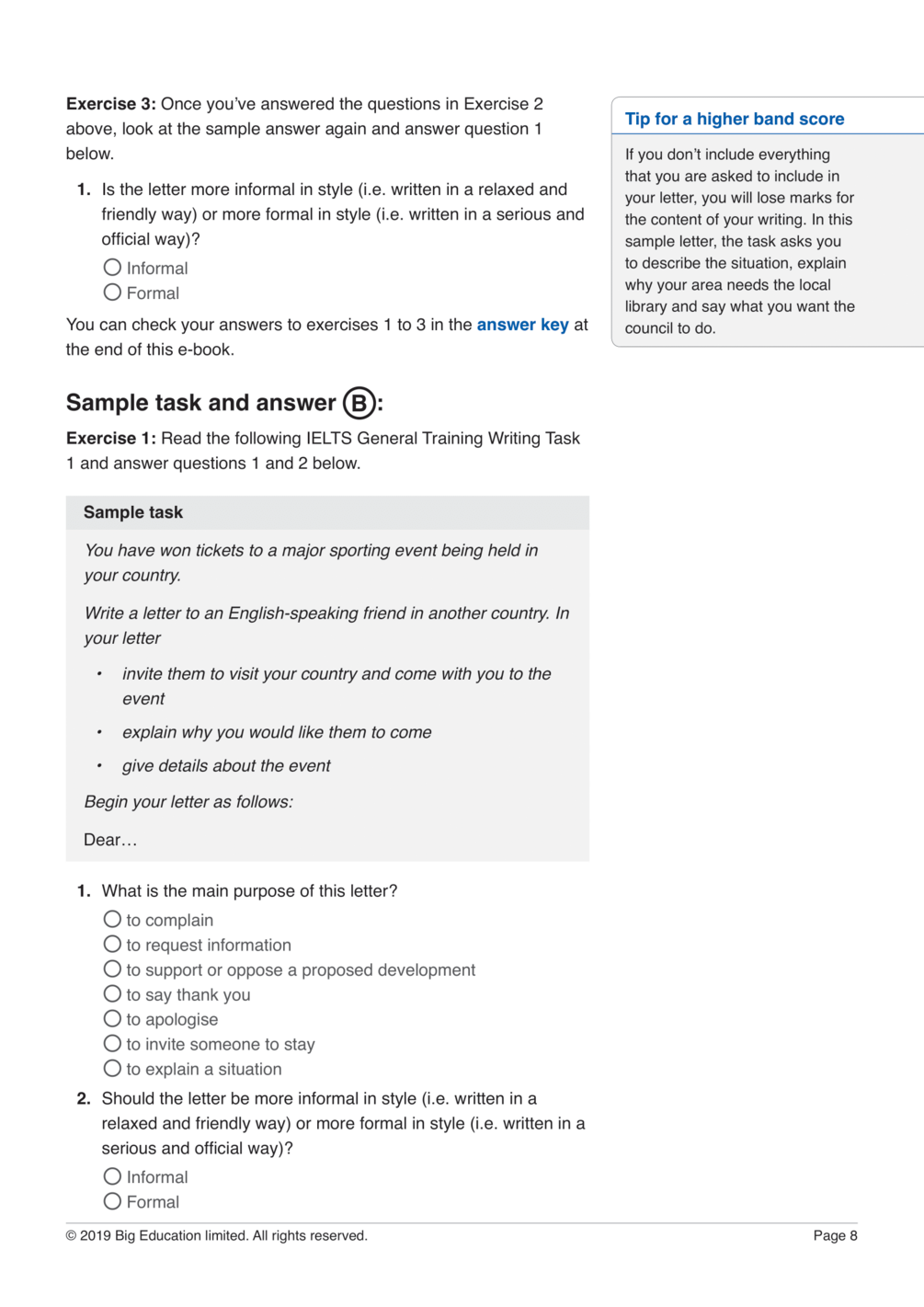- sample answers to the most common types of IELTS General Training Writing Task 1 and 2 question